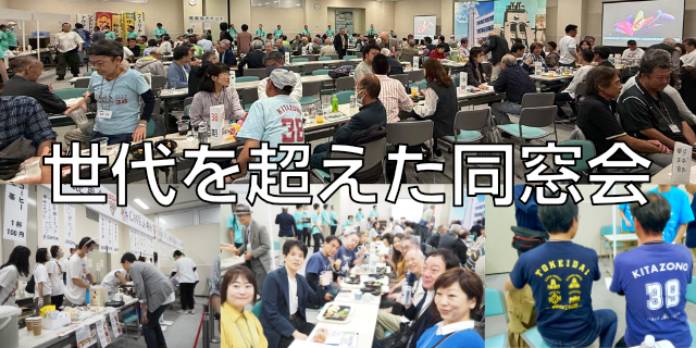 「九曜の集い」は、年1回、毎年秋に開催する同窓会です。北園高校を卒業した同窓生が一堂に会し、楽しい1日を過ごします。